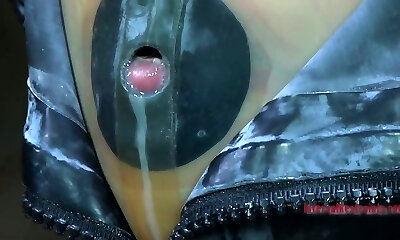 Thin girl clear latex catsuit and sex scene