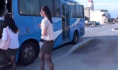 Tired chestnut haired office clerk Mami Asakura is plowed in subway teach