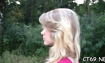Fervent nymph blows penis in pov and gets stretched twat shagged